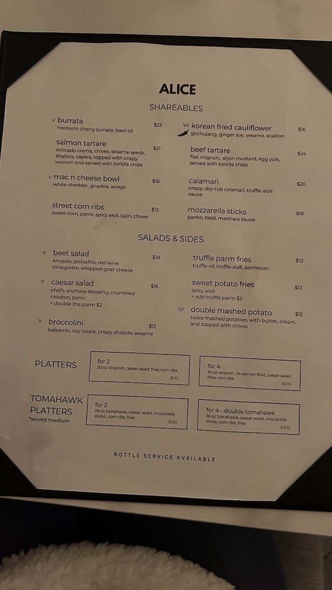 Alice also excels in mixology, offering inventive cocktails like the Chilli Espresso Martini and Bananas Foster Martini, each crafted to enhance your dining experience. With a welcoming atmosphere and attentive service, Alice Restaurant & Bar stands out as a must-visit destination in Toronto’s vibrant culinary scene.